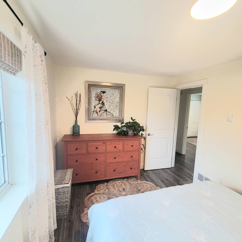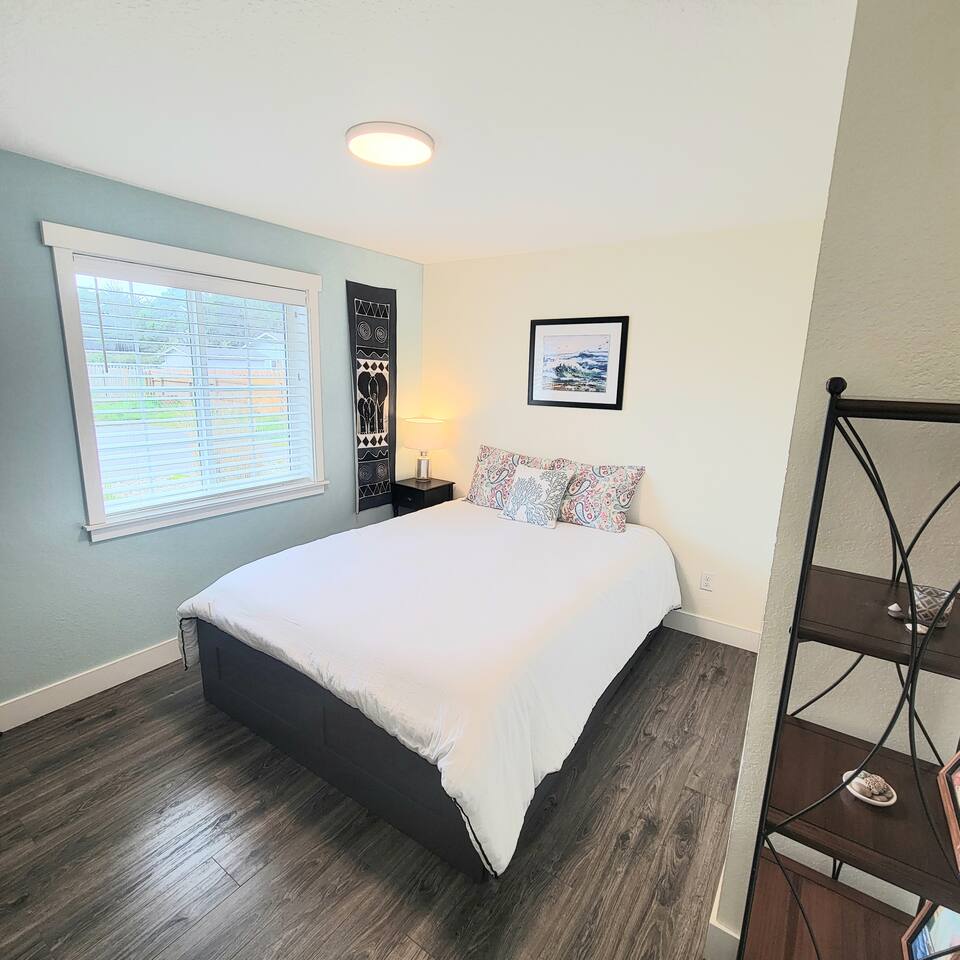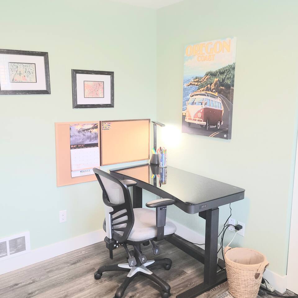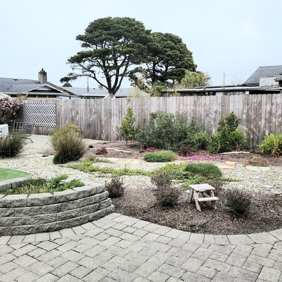 When you enter the house, the living room welcomes you with a nice comfy couch and two cozy chairs, the ambience of a warm inviting fireplace below a large flat screen smart tv. You can cozy up with your favorite book or watch your favorite movie while you unwind from the days adventures. We also offer a library of books in various rooms. The kitchen features new appliances including stainless steel refrigerator, stove/oven, dishwasher, coffee pot, and microwave. and is fully stocked with dishes, pots/pans and cutlery, for a simple dinner for two, or a family feast for six! The dining room features a table and chairs for six, plus two barstools, warm lighting and a great view of the beautifully landscaped backyard. As you wander down the all, you will see the bathroom on the right, with an extra large shower with tub, and beachy decor. Guest bedroom #1 is the master at the end of the hall to the right, just passed the bathroom. This room features a super comfortable queen bed, night stands, and a large dresser and closet. Guest bedroom #2 is at the end of the hall to the left. This room features a comfy queen bed, night stands, bookshelf with books for your reading pleasure, and a closet. Guest bedroom #3 is to the left. This room features a Murphy Bed disguised as a beautiful cabinet, a spacious, dedicated work are with a height adjustable desk, lamp, corkboard and calendar, plenty of closet space (this is where you will find food and water dishes for Fido) The linen closet is at the end of the hall, it holds the extra towels, and extra blankets and sheets. There is a coat closet in the living room as well. Enjoy use of a large garage to park your vehicle in during your stay. This is also where the washer and dryer are located. Currently, we are a dog-friendly rental. We allow up to TWO medium sized dogs with fee. Please clean up after your dog(s). With a huge fully fenced backyard, our house is an ideal place for guests who travel with their pets. Bandon is a very pet-friendly town! Location is everything to some. We are located at the very end of a super quiet street, there is no traffic noise at all, you have all the privacy you could want, while still being close to everything Bandon has to offer. Bandon offers a variety of fishing opportunities; whether you are interested in Coho or Chinook Salmon, Halibut, rock fish, catching your own Dungeness or Red Rock crab or even clamming in the mud flats. If you enjoy golfing, our home is located just a few minutes from the world famous Bandon Dunes Golf Resort & Bandon Crossings Golf Course. Bandon also offers a variety of highly rated restaurants, coffee shops, boutiques & specialty shops, and of course, several beaches!