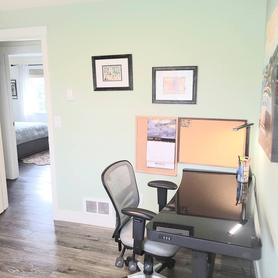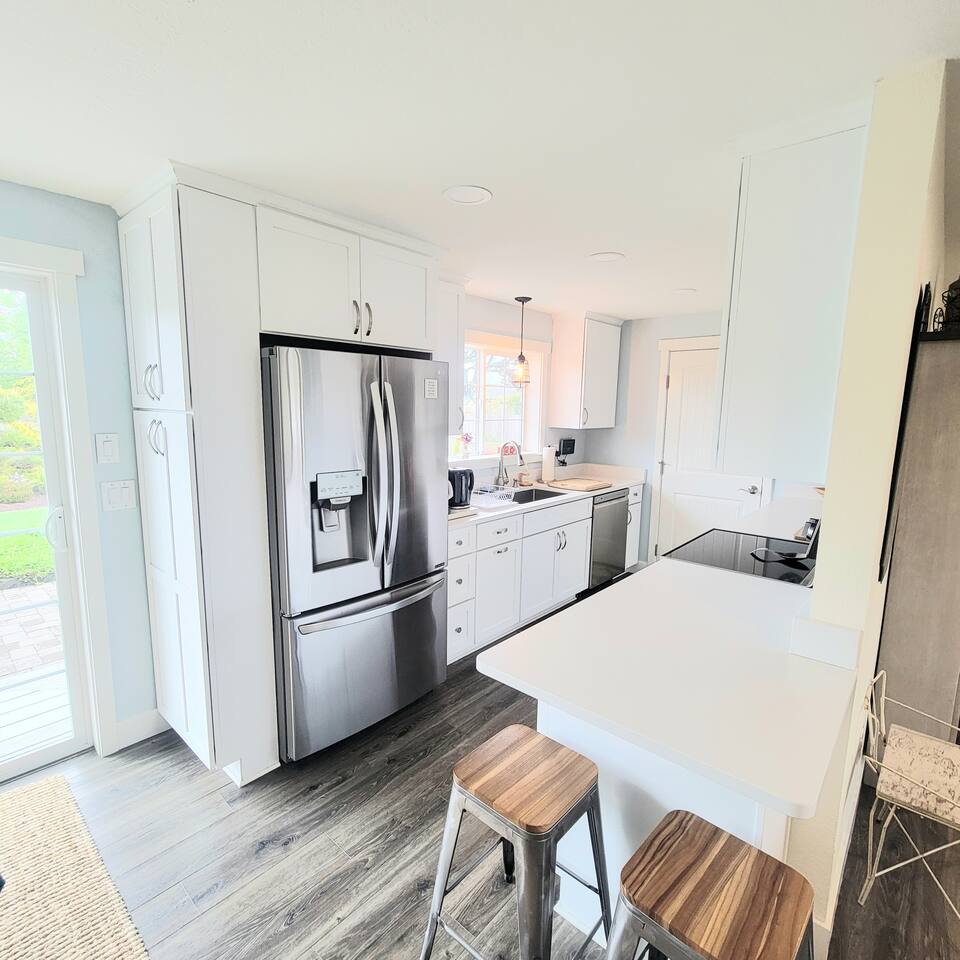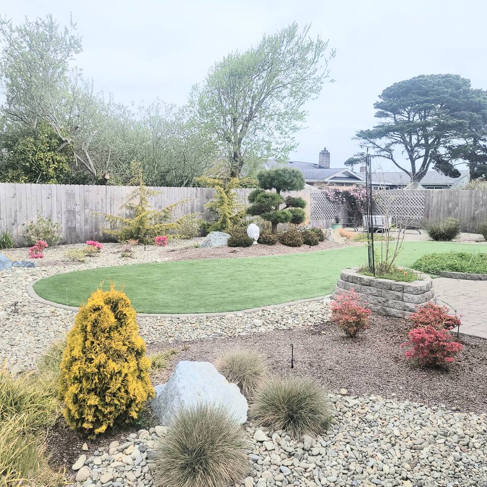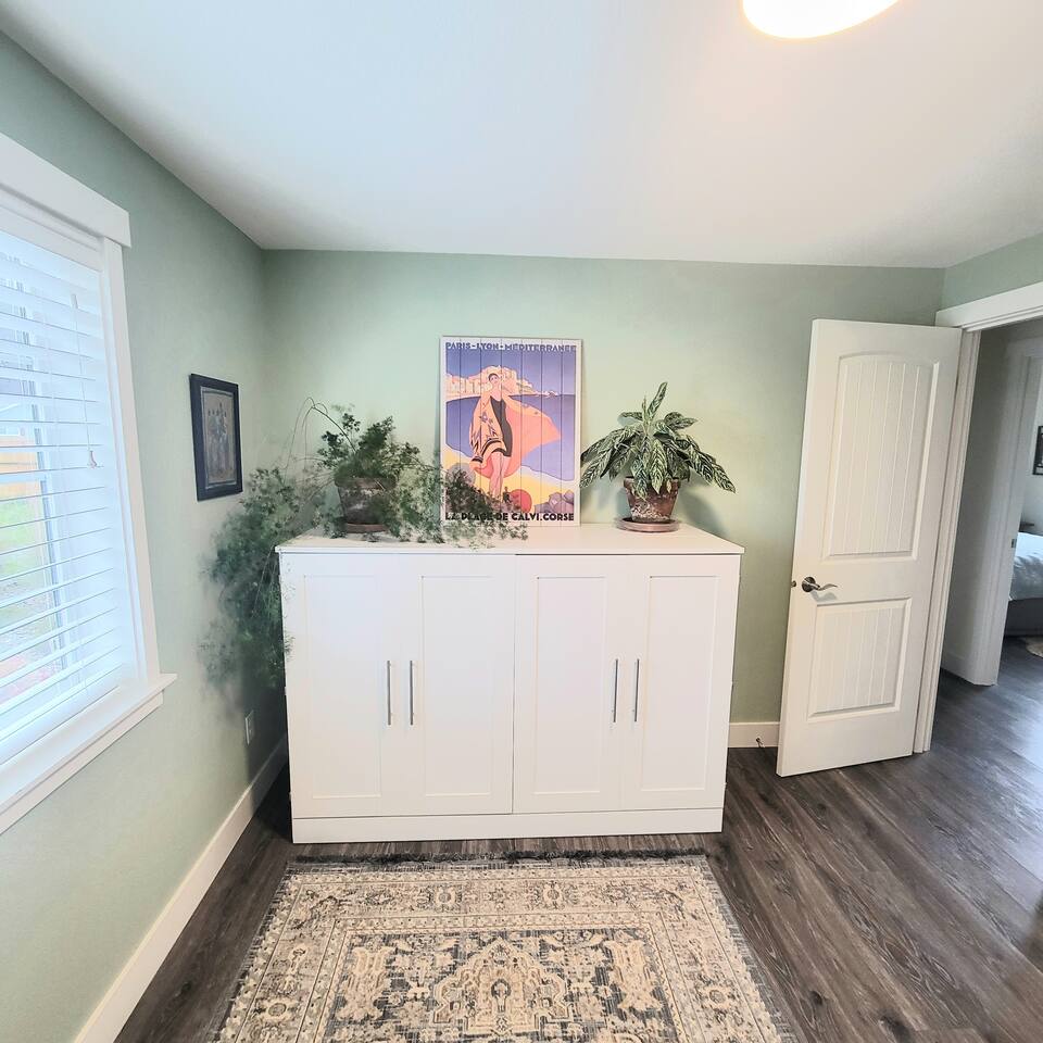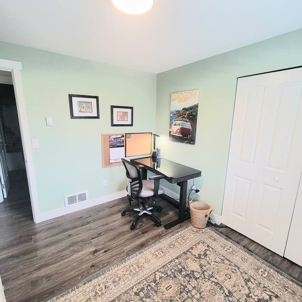 When you enter the house, the living room welcomes you with a nice comfy couch and two cozy chairs, the ambience of a warm inviting fireplace below a large flat screen smart tv. You can cozy up with your favorite book or watch your favorite movie while you unwind from the days adventures. We also offer a library of books in various rooms. The kitchen features new appliances including stainless steel refrigerator, stove/oven, dishwasher, coffee pot, and microwave. and is fully stocked with dishes, pots/pans and cutlery, for a simple dinner for two, or a family feast for six! The dining room features a table and chairs for six, plus two barstools, warm lighting and a great view of the beautifully landscaped backyard. As you wander down the all, you will see the bathroom on the right, with an extra large shower with tub, and beachy decor. Guest bedroom #1 is the master at the end of the hall to the right, just passed the bathroom. This room features a super comfortable queen bed, night stands, and a large dresser and closet. Guest bedroom #2 is at the end of the hall to the left. This room features a comfy queen bed, night stands, bookshelf with books for your reading pleasure, and a closet. Guest bedroom #3 is to the left. This room features a Murphy Bed disguised as a beautiful cabinet, a spacious, dedicated work are with a height adjustable desk, lamp, corkboard and calendar, plenty of closet space (this is where you will find food and water dishes for Fido) The linen closet is at the end of the hall, it holds the extra towels, and extra blankets and sheets. There is a coat closet in the living room as well. Enjoy use of a large garage to park your vehicle in during your stay. This is also where the washer and dryer are located. Currently, we are a dog-friendly rental. We allow up to TWO medium sized dogs with fee. Please clean up after your dog(s). With a huge fully fenced backyard, our house is an ideal place for guests who travel with their pets. Bandon is a very pet-friendly town! Location is everything to some. We are located at the very end of a super quiet street, there is no traffic noise at all, you have all the privacy you could want, while still being close to everything Bandon has to offer. Bandon offers a variety of fishing opportunities; whether you are interested in Coho or Chinook Salmon, Halibut, rock fish, catching your own Dungeness or Red Rock crab or even clamming in the mud flats. If you enjoy golfing, our home is located just a few minutes from the world famous Bandon Dunes Golf Resort & Bandon Crossings Golf Course. Bandon also offers a variety of highly rated restaurants, coffee shops, boutiques & specialty shops, and of course, several beaches!