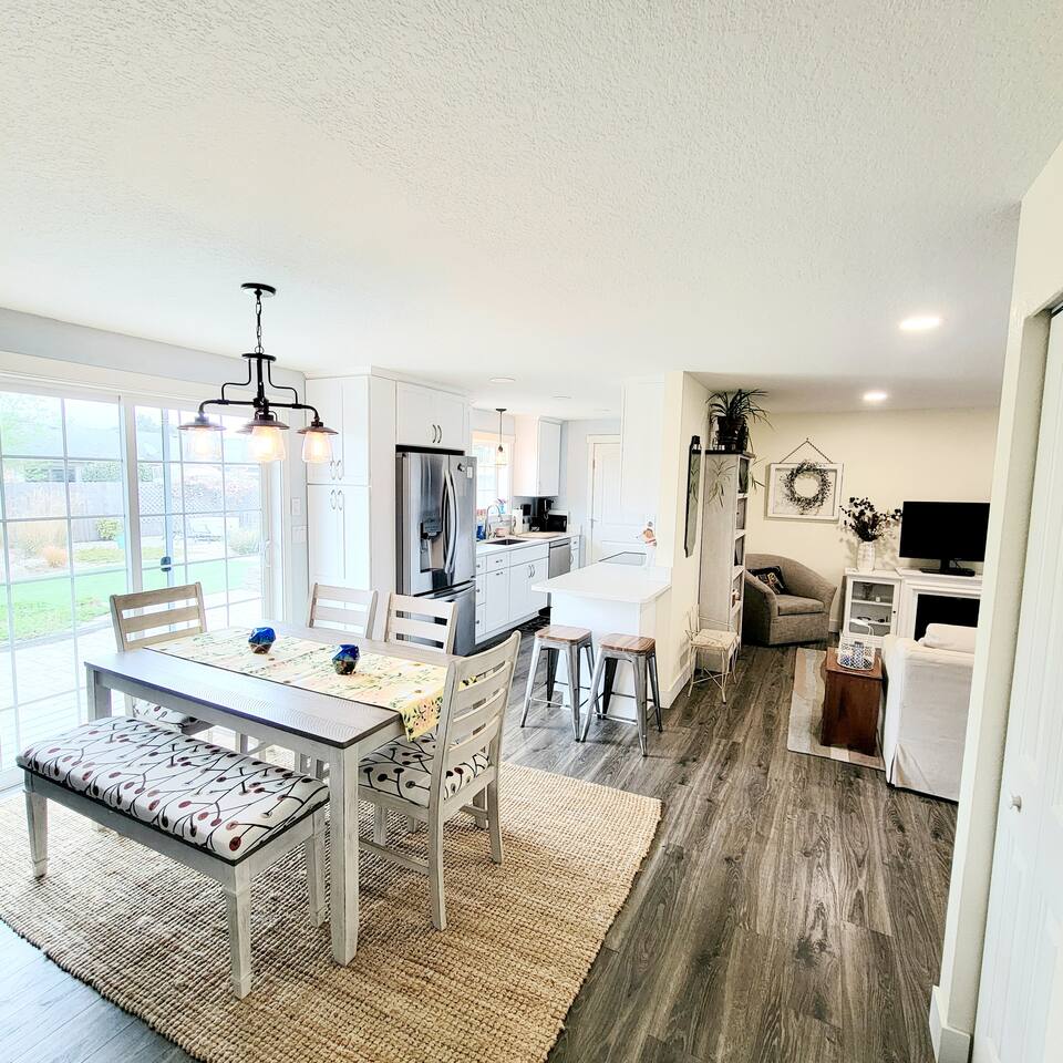 Casa Amore~The Sequel Welcome to your home away from home. Relax and unwind in this calm, stylish three bedroom, one bath home that features WiFi, smart tv, a huge beautifully landscaped backyard with a putting green and propane fire pit, ample parking, and comfortably accommodates 6 guests.